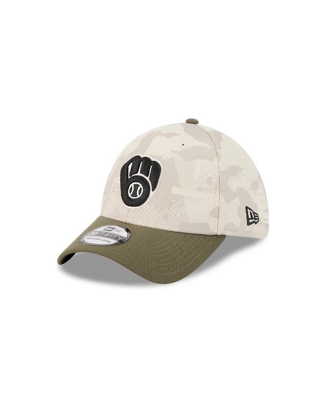 New Era Men's Light Beige/Olive Milwaukee Brewers 2025 Armed Forces Day 39THIRTY Flex Hat