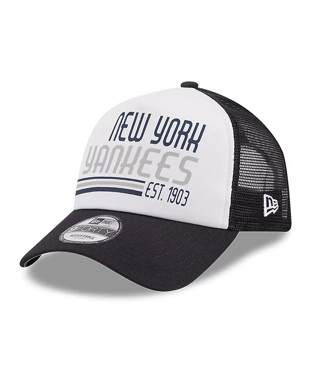 New Era Men's White/Navy New York Yankees Stacked A-Frame Trucker 9Forty Adjustable Hat