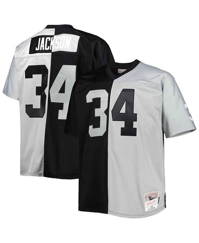 Men's Mitchell & Ness Bo Jackson Black, Silver Las Vegas Raiders Big and Tall Split Legacy Retired Player Replica Jersey