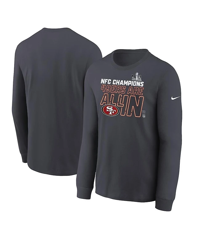 Big Boys Nike Anthracite San Francisco 49ers 2023 Nfc Champions Locker Room Trophy Collection Long Sleeve T-shirt