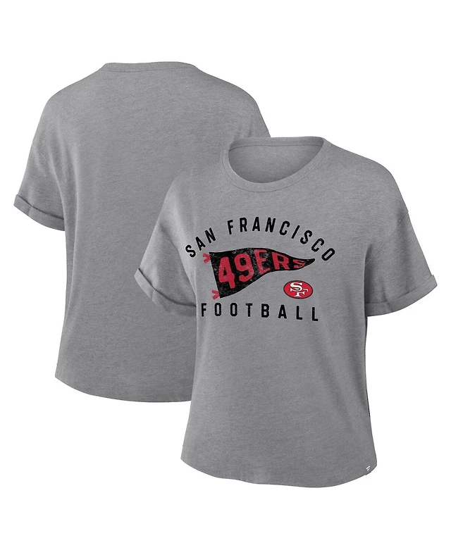 Fanatics Women's Heather Gray San Francisco 49ers Pennant Wave Tribute Tri-Blend Boxy T-Shirt