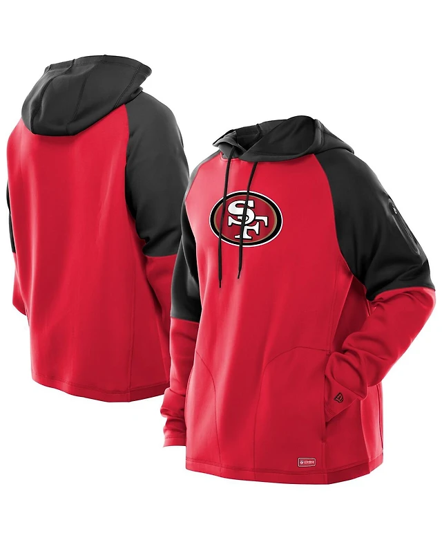 New Era Men's Scarlet San Francisco 49ers Combine Authentic Color Block Raglan Pullover Hoodie