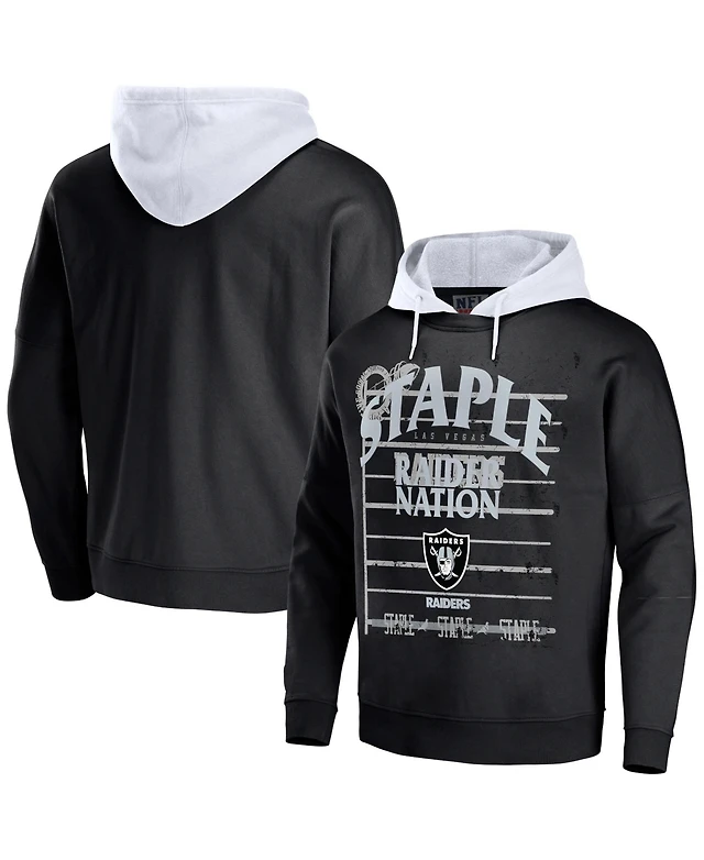 Men's Nfl X Staple Black Las Vegas Raiders Oversized Gridiron Vintage-Like Wash Pullover Hoodie