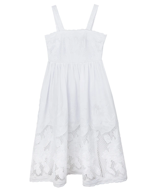 Damson Madder Peaches Embroidered Apron Midi Dress