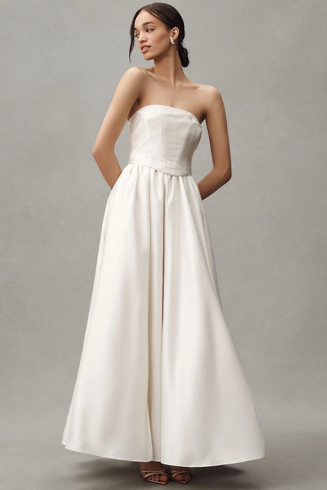 BHLDN Organza 3D Floral Appliqué Strapless Midi Dress