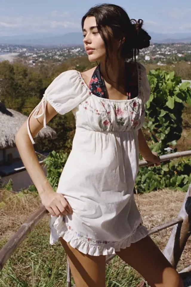 Kimchi Blue Marcella Embroidered Tie-Back Babydoll Mini Dress
