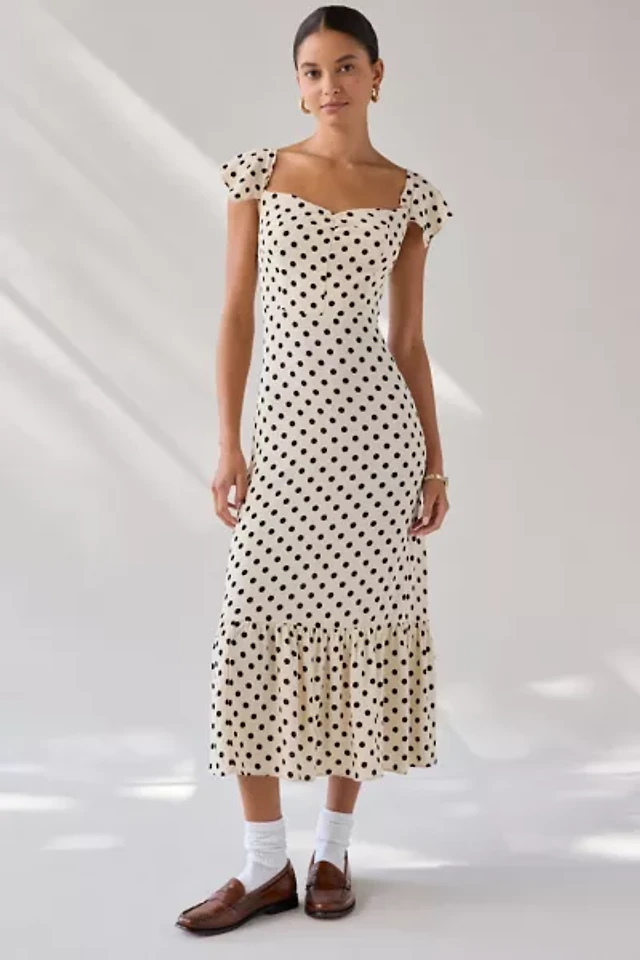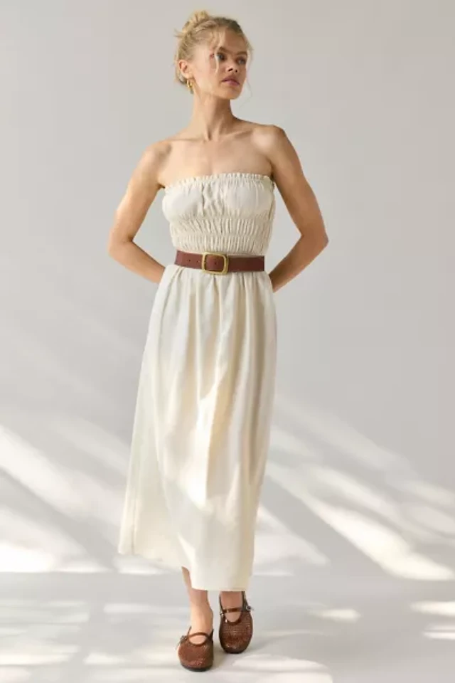 ReMADE By UO Made LA EcoVero™ Linen Smocked Milkmaid Midi Dress