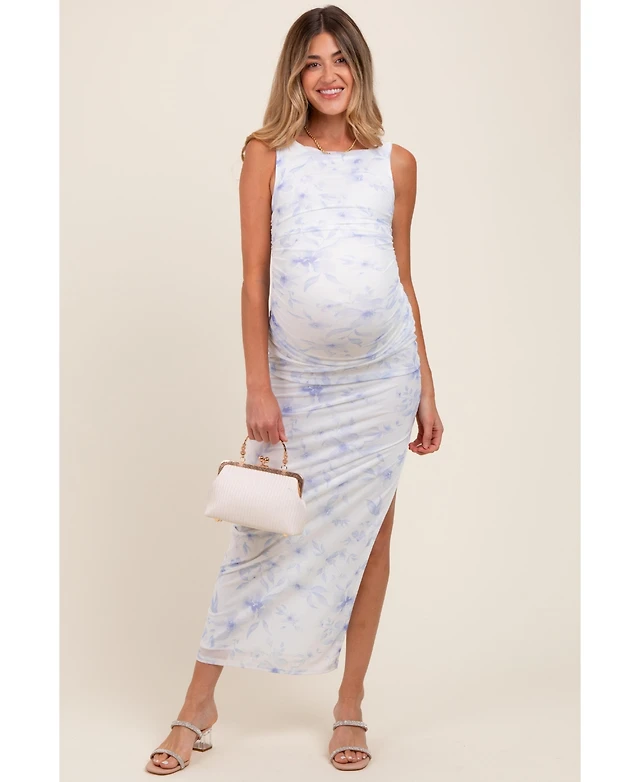Pinkblush Maternity Cream Floral Smocked Long Sleeve Maxi Dress