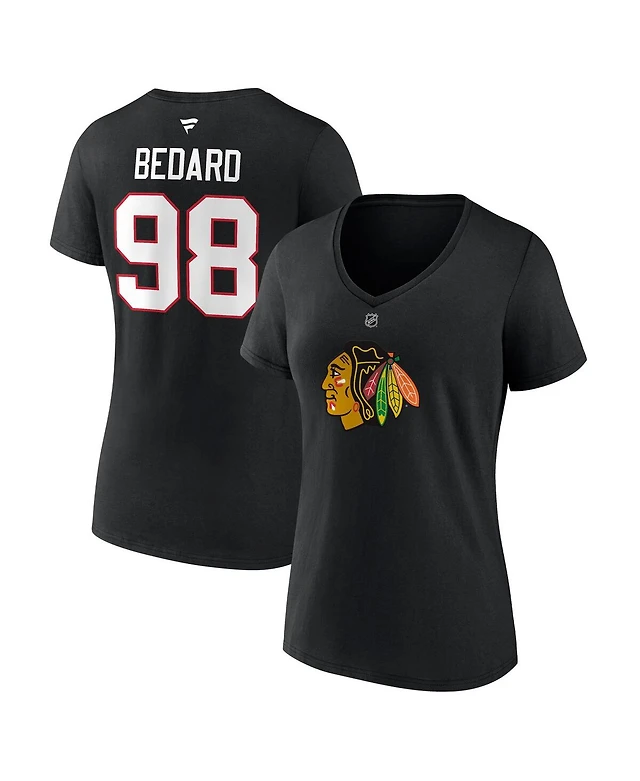 Women's Fanatics Connor Bedard Chicago Blackhawks 2023 Nhl Draft Authentic Stack Player Name and Number V-Neck T-shirt