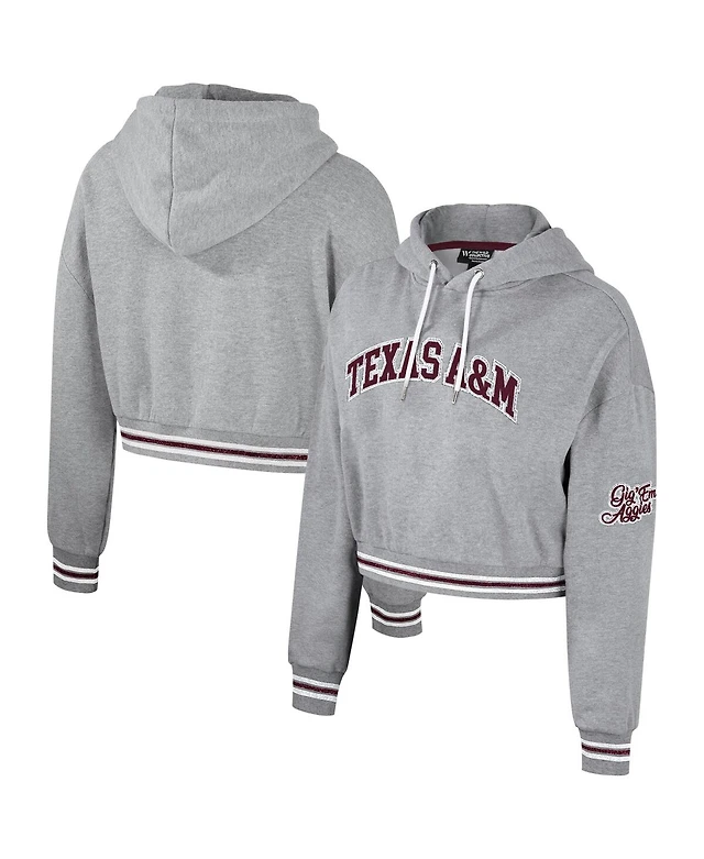 Women's The Wild Collective Heather Gray Distressed Texas A&M Aggies Cropped Shimmer Pullover Hoodie