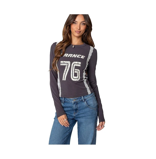 Edikted Womens Lilyan Rhinestone Sheer Mesh Top