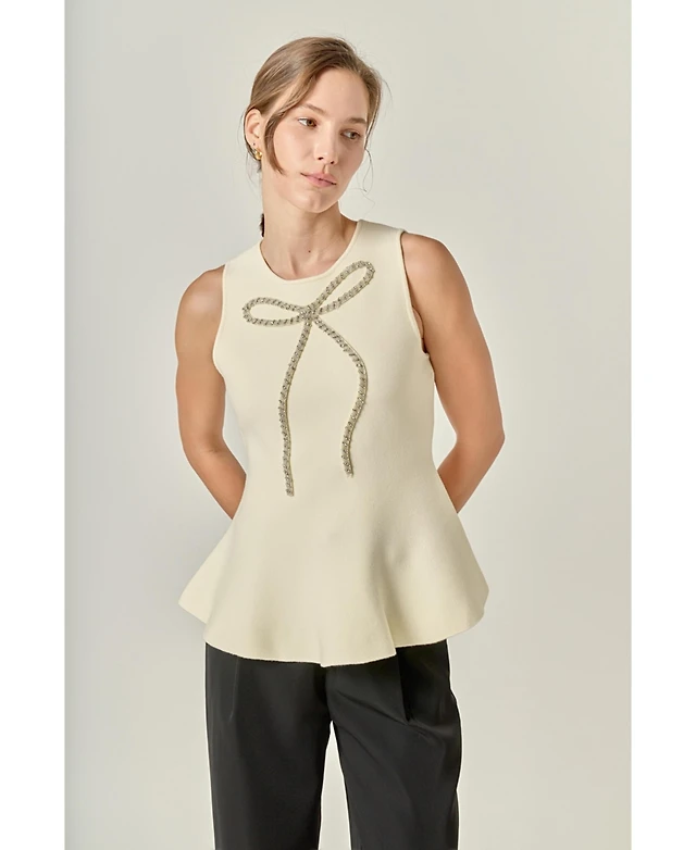 Cable & Gauge Women's Puff Sleeve Bow Top