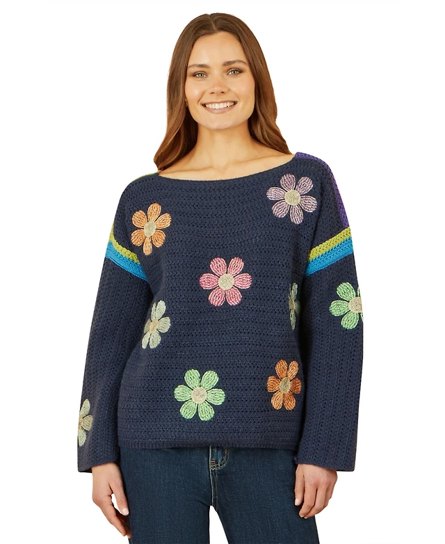 Cable & Gauge Women's Floral Mock Neck Sweater