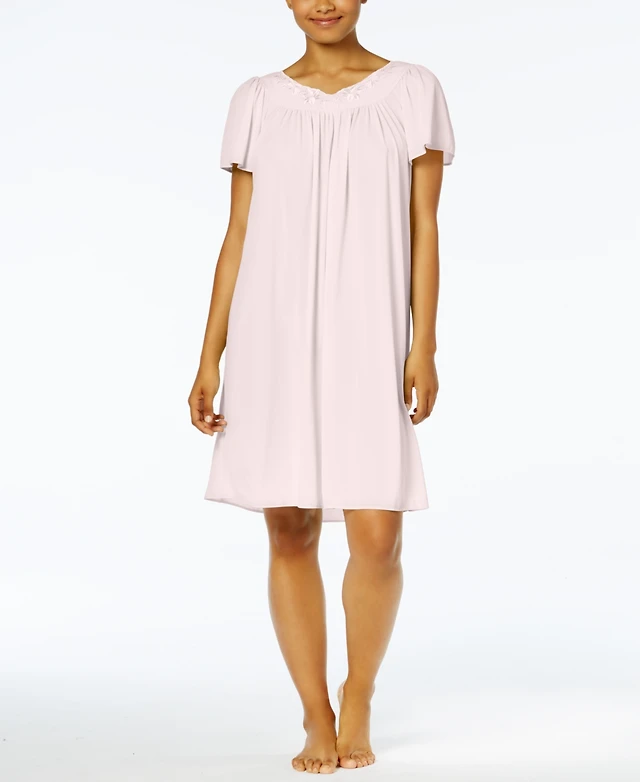Miss Elaine Women's Short-Sleeve Embroidered Nightgown