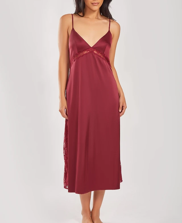 iCollection Women's Silky Open Back Nightgown with Lace Trims