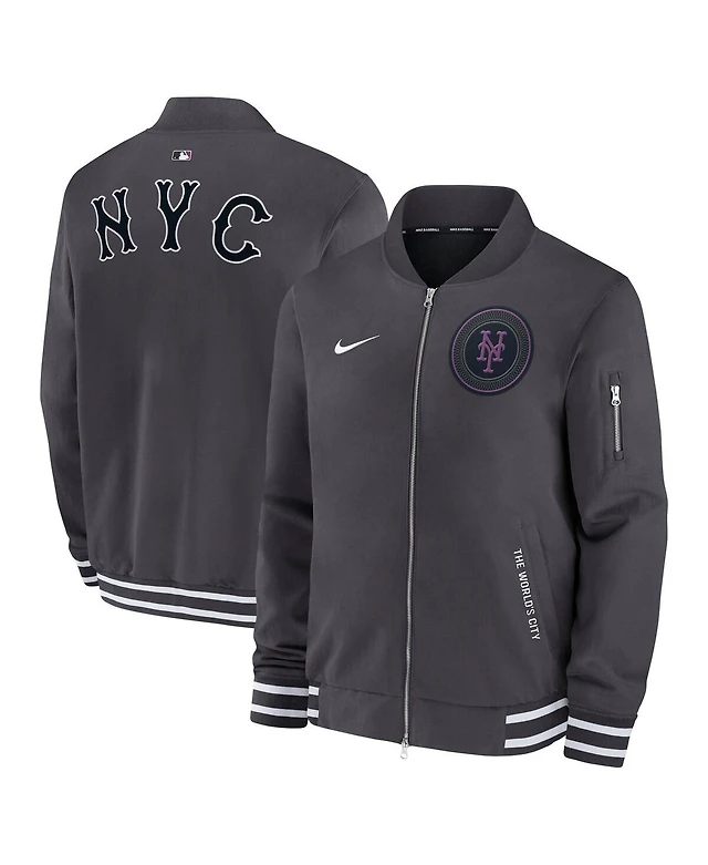 Nike Men's Anthracite New York Mets Authentic Collection City Connect Full-Zip Bomber Jacket