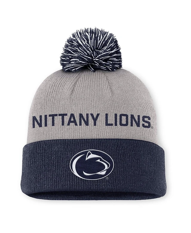 Nike Men's Gray/Navy Penn State Nittany Lions Primetime Peak Cuffed Pom with Knit Hat