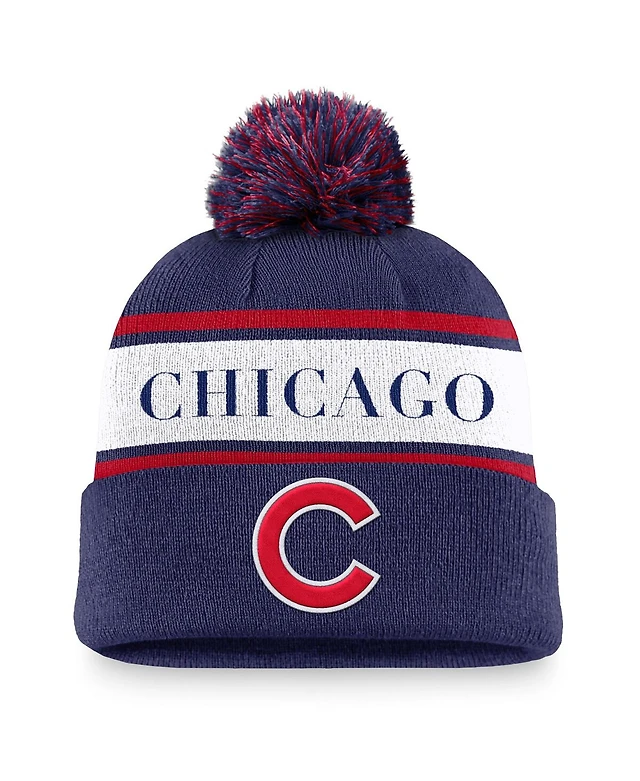 Nike Men's Royal Chicago Cubs Team Stripe Peak Cuffed with Pom Knit Hat