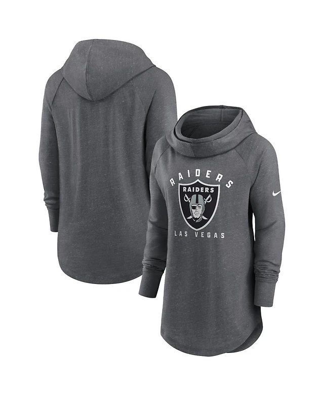 Women's Nike Heather Charcoal Las Vegas Raiders Raglan Funnel Neck Pullover Hoodie