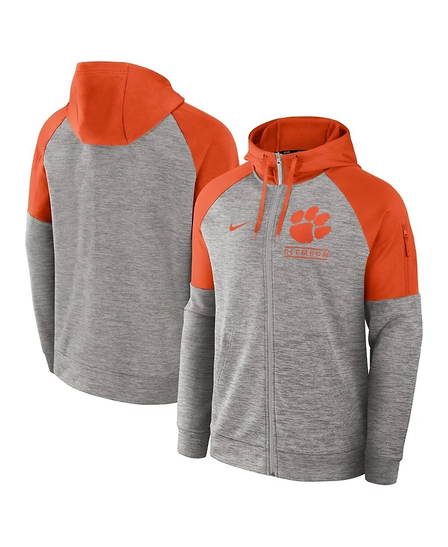 Nike Men's Heather Gray Clemson Tigers Fitness Raglan Performance Full-Zip Hoodie