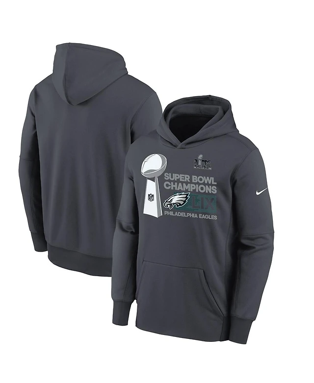 Nike Big Boys and Girls Anthracite Philadelphia Eagles Super Bowl Lix Champions Locker Room Trophy Collection Fleece Pullover Hoodie