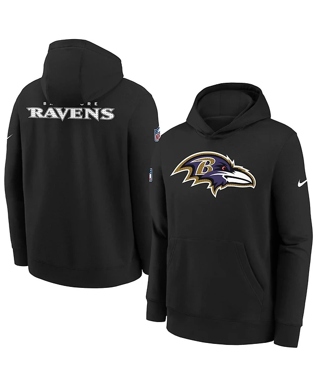 Nike Big Boys and Girls Black Baltimore Ravens Sideline Club Fleece Hoodie