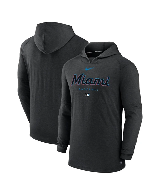 Men's Nike Heather Black Miami Marlins Authentic Collection Early Work Tri-Blend Performance Pullover Hoodie