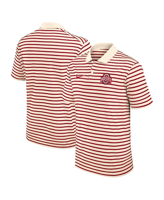 Nike Men's Cream/Scarlet Ohio State Buckeyes Solid Foundation Striped Performance Polo Shirt