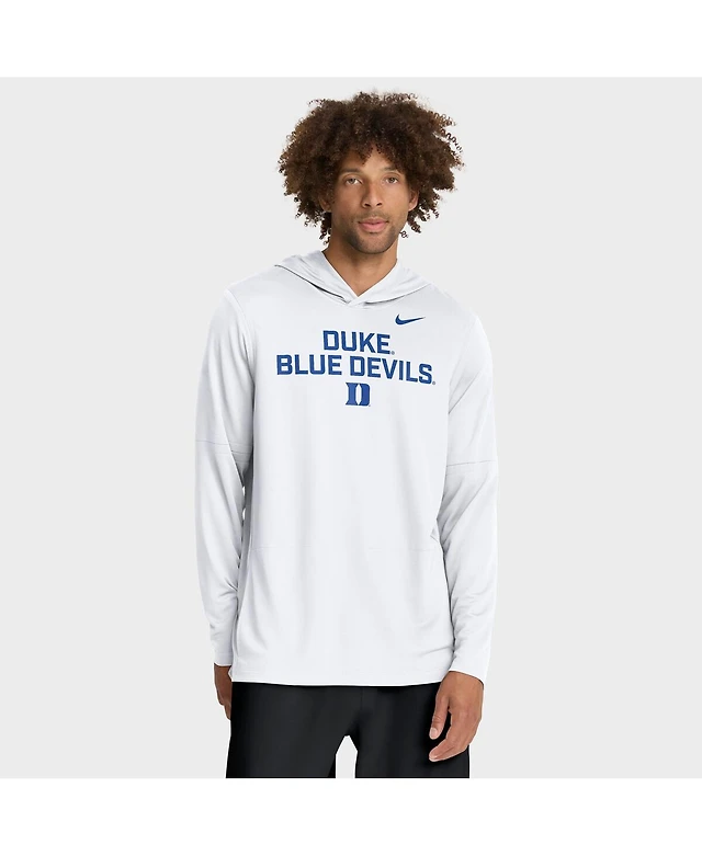Nike Men's White Duke Blue Devils 2025 Sideline Performance Long Sleeve Hoodie T-Shirt