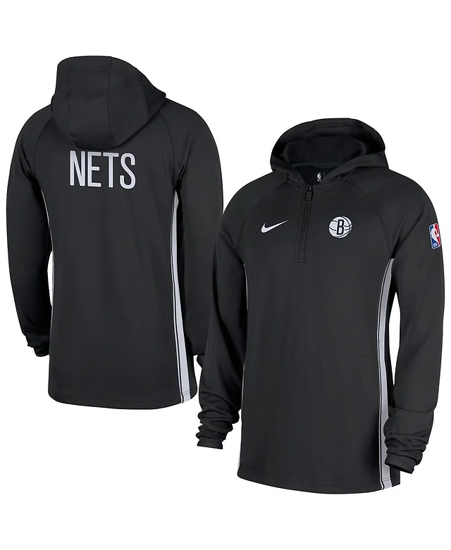 Nike Men's Black Brooklyn Nets Authentic On Court Zone Quarter-Zip Dri-fit Hoodie Jacket