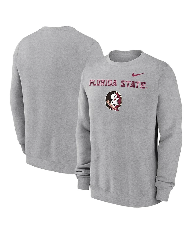 Nike Men's Heather Gray Florida State Seminoles Primetime Primary Stack Pullover Sweatshirt