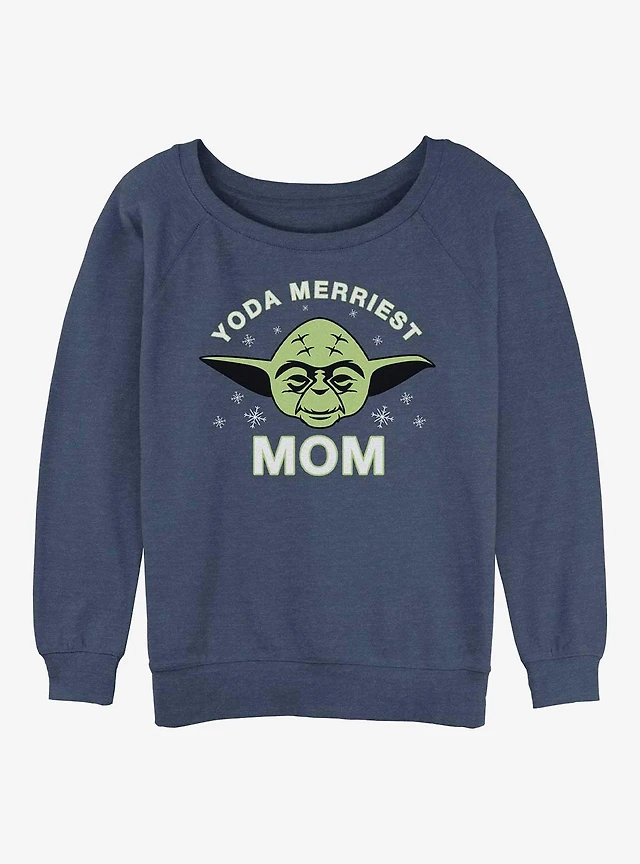 Star Wars Yoda Merriest Mom Girls Slouchy Sweatshirt