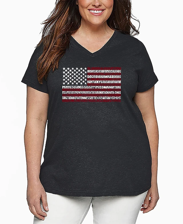 La Pop Art Plus 50 States Usa Flag Word V-Neck T-Shirt