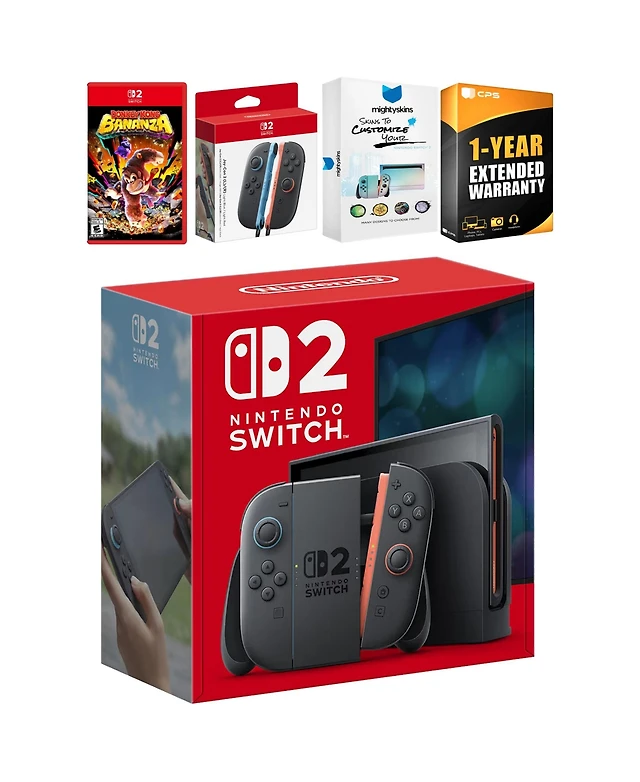 Nintendo Switch 2 Console with Donkey Kong Bonanza, Extra Joy-Cons, MightySkins Code and 1 Cps Year Extended Warranty