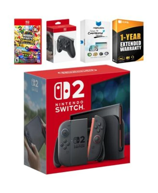 Nintendo Switch 2 Console With Super Mario Party Jamboree Pro Controller Mightyskins Code Cps Year Extended Warranty