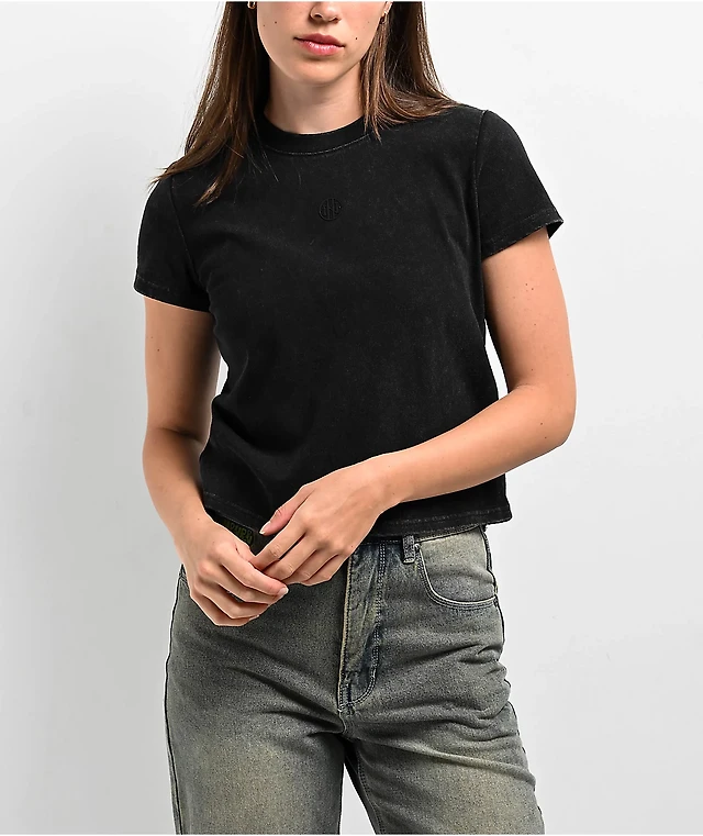 Ninth Hall Fundamentals Estie Black Wash Crop Long Sleeve T-Shirt