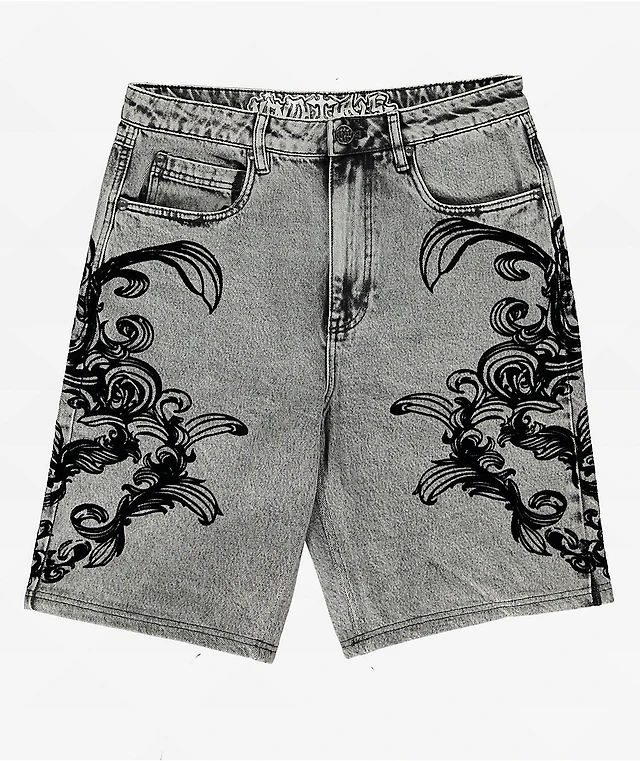 Ninth Hall Waylay Tussle Grey Wash Denim Shorts