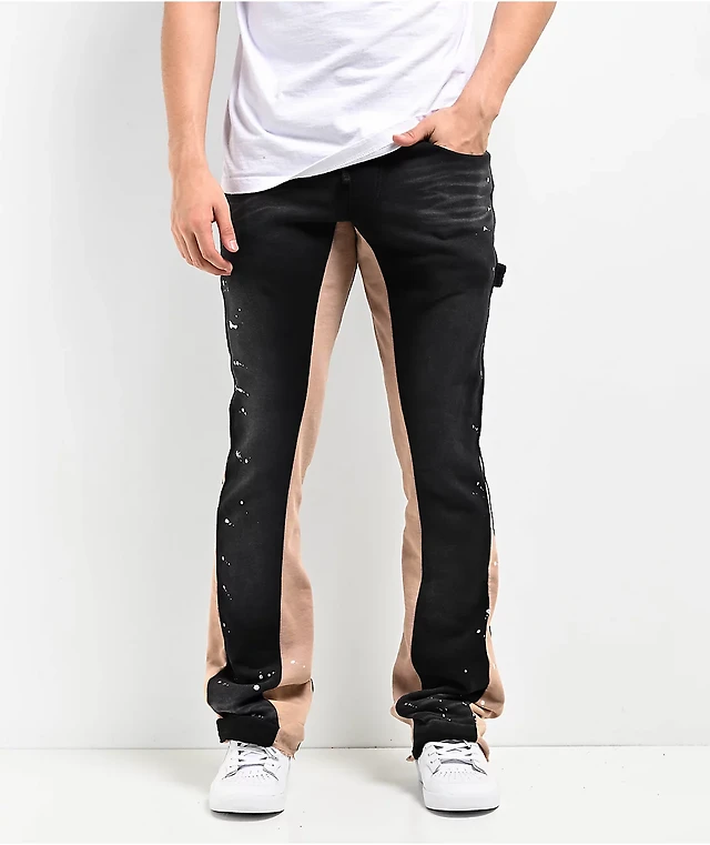 Ninth Hall Black & Tan Wash Stacked Flare Sweatpants