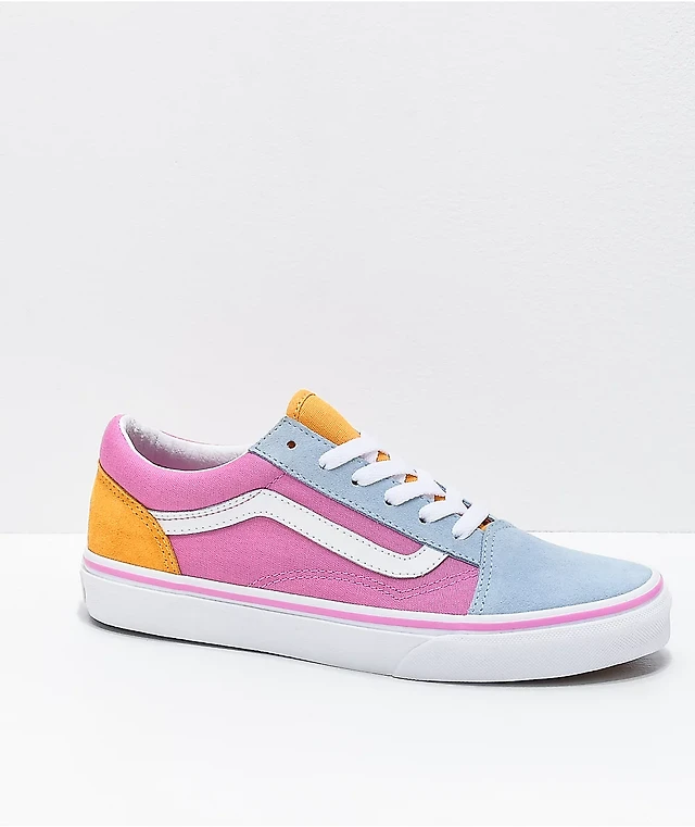 Vans Old Skool Colorblock Pink, Orange & Light Blue Skate Shoes
