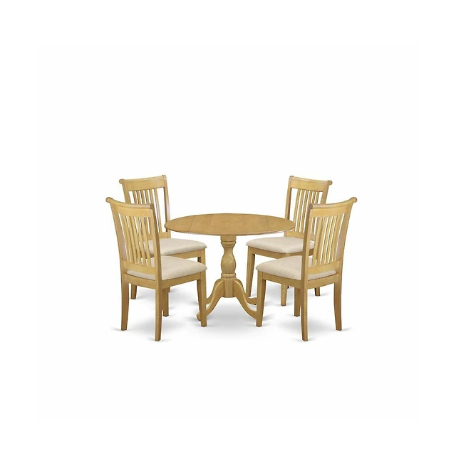 East West Furniture 5 Piece Table and Chairs Dining Set - Oak Wood Dining Table and 4 Oak Wooden Dining Chairs with Slatted Back - Oak Finish