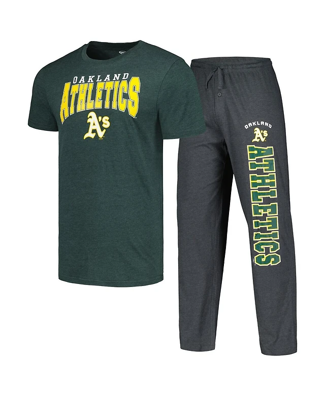 Concepts Sport Men's Charcoal/Green Oakland Athletics Meter T-Shirt Pants Sleep Set