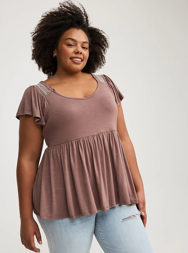 Ann Taylor Weekend Collection Chambray Ruffle Collar Popover Top Washed Seaside Indigo Women's