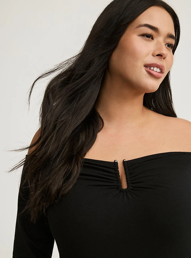 Ann Taylor Gathered Off The Shoulder Top Black Women's