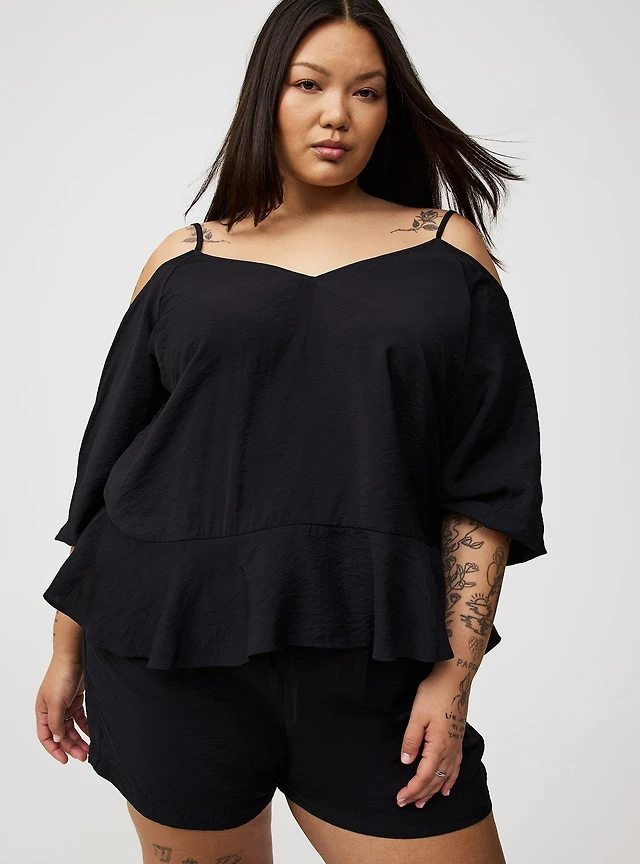 Women's Cold Shoulder Ruffle Sleeve Top