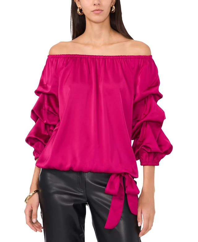 Vince Camuto Women's Textured Off-The-Shoulder Sheer Bubble 3/4-Sleeve Tie-Front Blouse