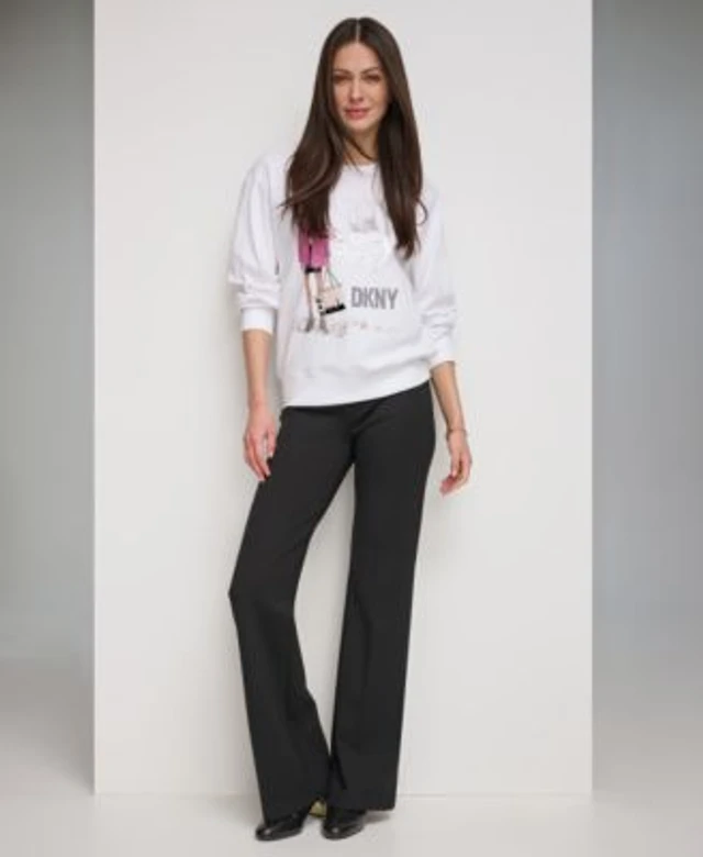 Dkny Womens Printed Front Drop Shoulder Sweatshirt Polished High Waisted Wide Leg Trousers