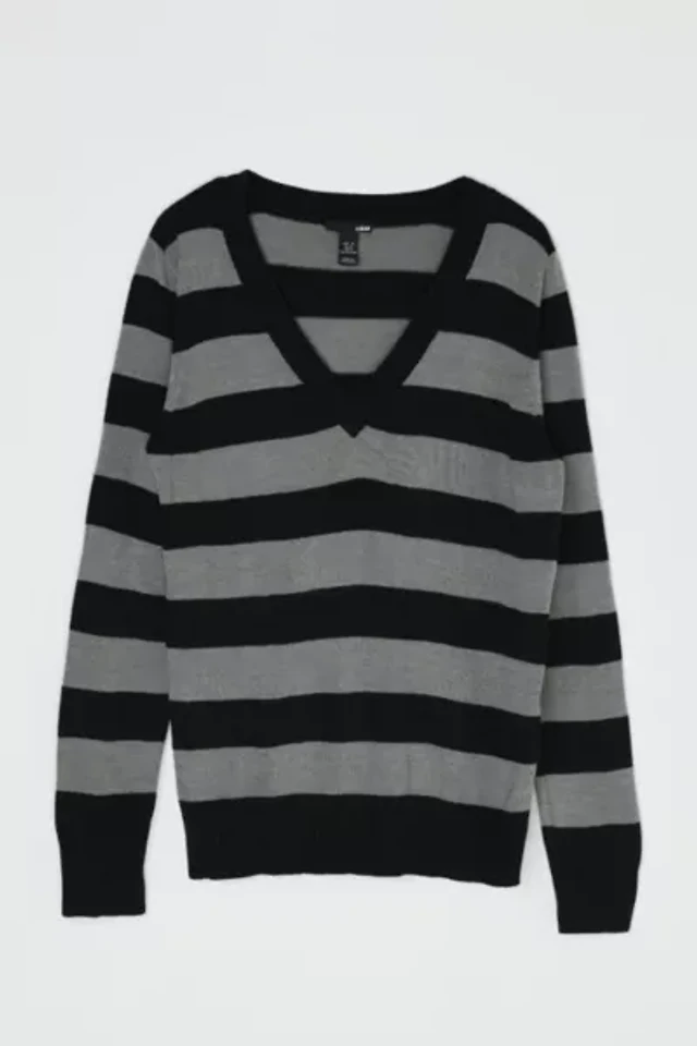 Vintage Y2k V-Neck Striped Ribbed Sweater