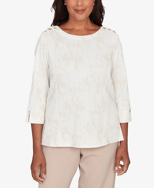 Alfred Dunner Petite Saratoga Springs Raised Texture Floral Design Knit Top
