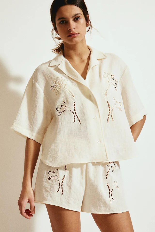 WeWoreWhat Women's Oversized Crochet Button-up Shirt