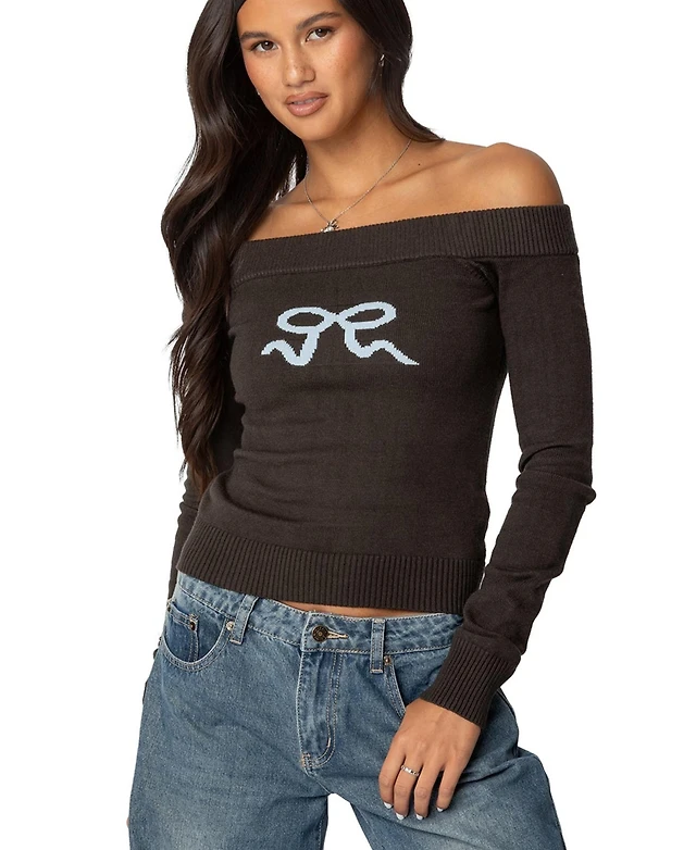 Edikted Womens Trix Off Shoulder Open Knit Top